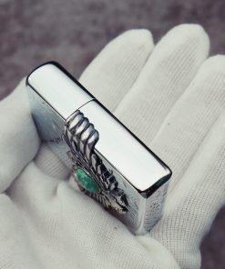 ?ZIPPO HOA VĂN MẠ BẠC ĐÍNH ĐÁ NGỌC LAM