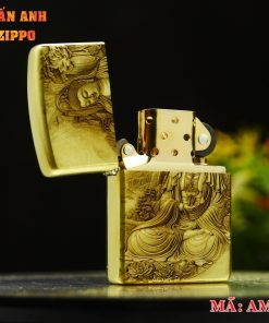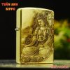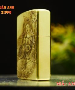 Điểm nhấn đặc biệt của chiếc Zippo này chính là hình khắc 3D ở một mặt, mô tả hình Quan Âm Bồ Tát. Hình ảnh Quan Âm Bồ Tát, với gương mặt từ bi và tay cầm bình cam lồ, tượng trưng cho lòng từ bi, sự cứu khổ cứu nạn và mang đến bình an cho chúng sinh. Các chi tiết được khắc họa sống động và tinh xảo, từ những nếp gấp trên áo choàng đến vẻ dịu dàng và nhân ái trên gương mặt của Quan Âm, tạo nên một tác phẩm nghệ thuật đầy linh thiêng và ý nghĩa.
